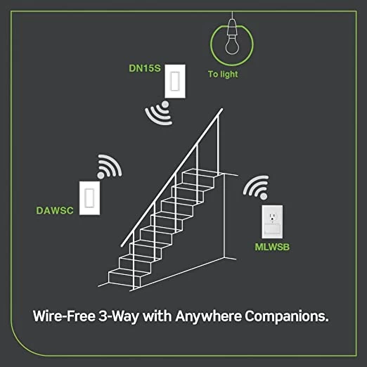 - WIRE-FREE 3-WAY: Add Wire-Free Multi-location control when paired with optional Anywhere Dimmer Companion (DAWDC) or Anywhere Switch Companion (DAWSC)